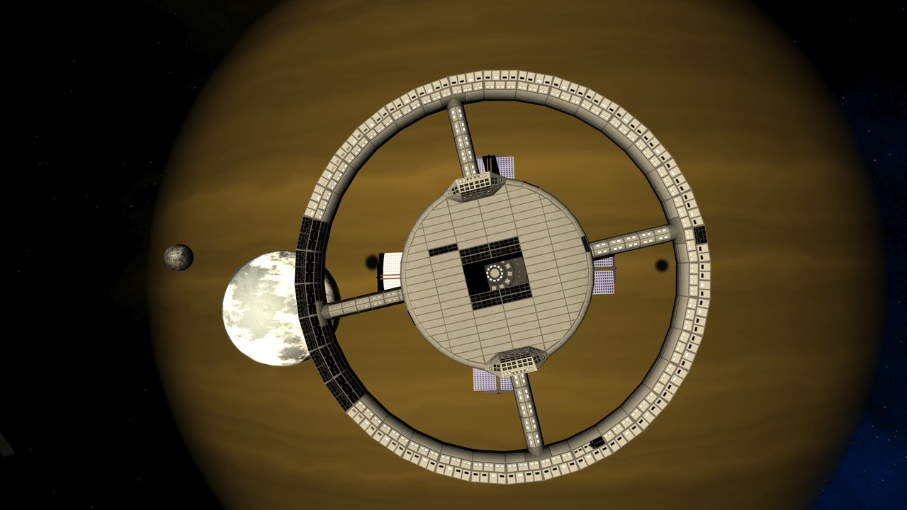 Okay then, how much extra work did this new shadow code cause for the shader? I obviously need the shadows both on the rotating part of the station and on the stationary back part of the station, so I needed to make two versions of this shader as well. The more interesting is the rotating part shader, as that will be more complex. The only change to the vertex shader was the sending of the world position of the fragment as a new interpolator, so the vertex shader uses an additional load/store cycle. The fragment shader however included the whole new subroutine, and thus the arithmetic cycles went from the original 6.5 to 12. That was quite a big increase in GPU cycles, but it should still be within safe limits to keep a steady framerate.