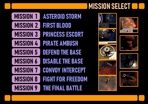 After I got the damaged station textures done for missions 5 and 6, and decided on the Mission 8 skybox, I now had all the missions looking the way I wanted. Thus, I was finally able to record all the missing video clips for the main menu. The main menu runs a short (32-frame) clip of each mission by the mission name (much like some DVDs do in their chapter menu), just to make the menu a bit more interesting. The videos run at 8 frames per second, with interpolated frames in between, so those 32 frames are actually enough for a 4-second video clip. In an attempt to hide the short length of the videos, I started each video at a different time, so it is not so immediately obvious how they loop the same 32 frames over and over.